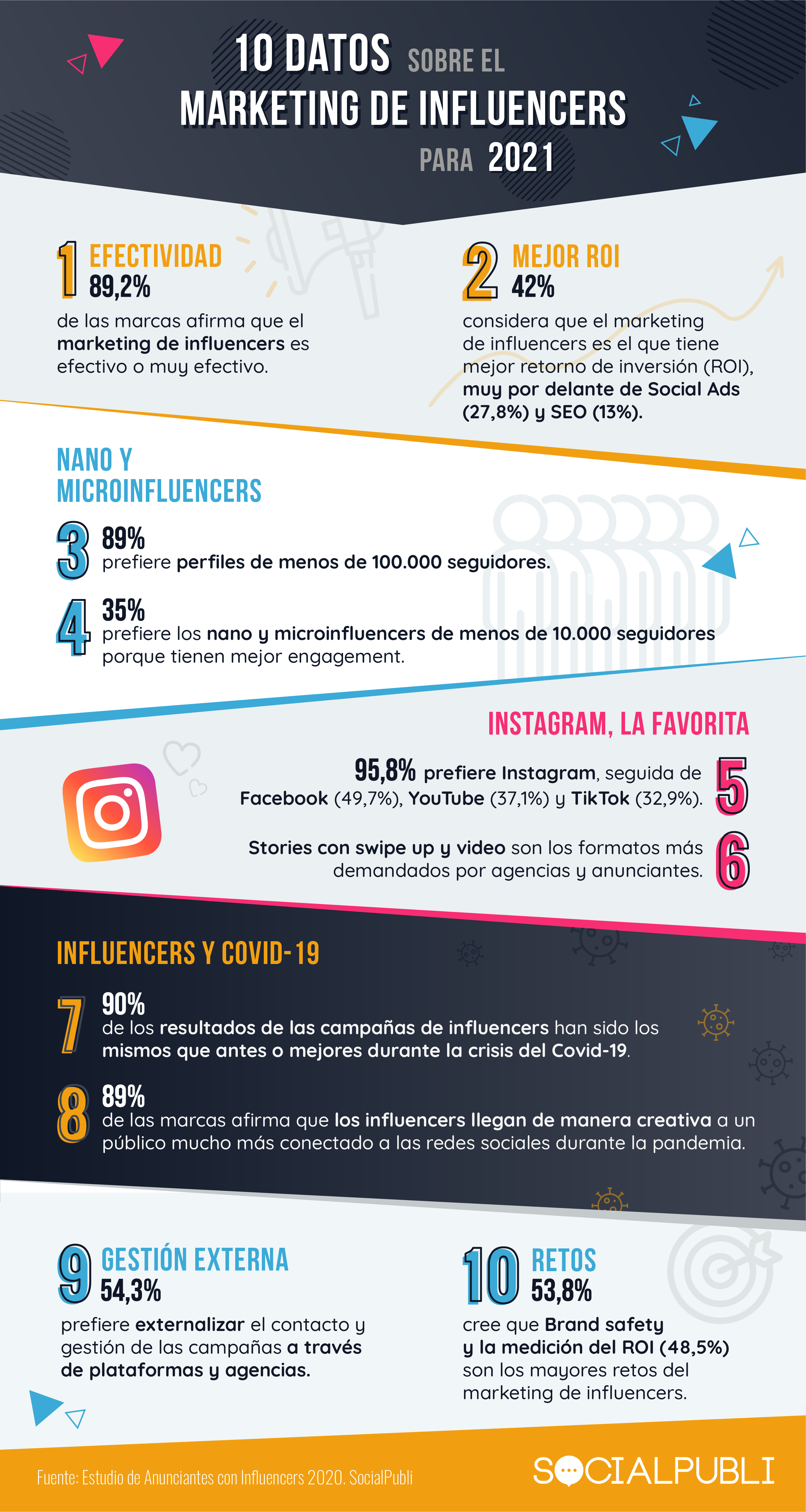 Aquí te dejamos 10 datos estadísticos extraídos del Estudio de Anunciantes con Influencers elaborado por SocialPubli que marcan las tendencias del influencer marketing para afrontar el 2021: